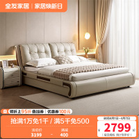 全友家居现代简约头层牛皮软包云朵床主卧室1.8x2米真皮落地床