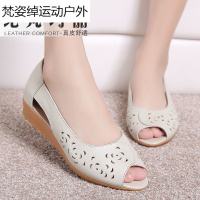 鱼嘴鞋真皮坡跟妈妈鞋平底防滑中老年女鞋夏季软底中年凉鞋女大码