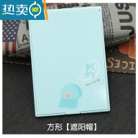 敬平镜子折叠小号日式随身化妆插画高清镜便携式学生方形梳妆单面小镜 方形[遮阳帽] 尺寸:11.5*8cm便携式用镜