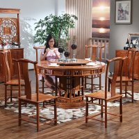 粤顺 红木家具花梨木餐桌椅 组合 一桌六椅明清古典明式圆餐桌Z32