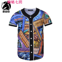 锦铭七玥2018夏季潮牌短袖T欧美印花男士上衣男装开衫T恤棒球衫