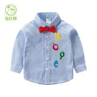 春上新 儿童字母绣衬衫 婴儿蝴蝶结长袖开衫男宝宝休闲衬衣