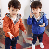 男童夹棉外套秋冬新款中大童运动开衫卫衣儿童连帽上衣加厚潮