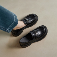 厚底乐福鞋女2026春新款头层牛皮复古学院风单鞋一脚蹬真皮小皮鞋