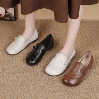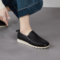 2026春秋真皮女鞋乐福鞋头层牛皮平底鞋懒人一脚蹬小白鞋休闲单鞋