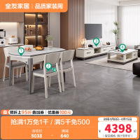 全友家居现代简约岩板餐桌客厅新款可伸缩可变圆功能餐桌