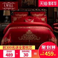 新婚庆四件套大红色床品全棉结婚礼家纺六八件套刺绣床上用品套件