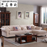 艺品亲尚美式布艺沙发小户型三人位组合套装客厅实木简约整装转角