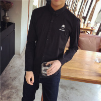 莞馨(wanxin)新款2016新款公仔头像刺绣长袖修身型秋季韩版衬衫男韩版时尚衬衣