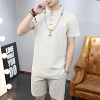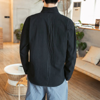 YANXU复古棉麻休闲夹克男新款中式纯色透气苎麻外套翻领亚麻帅气