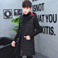 青少年马甲男秋冬季韩版潮学生中长款外套帅气羽绒棉连帽无袖棉衣