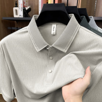 夏季短袖T恤男痕翻领薄款冰丝爸爸polo衫高端纯色中年半袖上衣