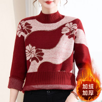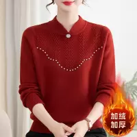 半高领加绒加厚毛衣女一体绒打底衫羊毛衫妈妈装冬装中年女士洋气