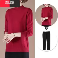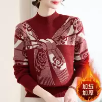 妈妈冬装加绒加厚毛衣半高领内搭保暖上衣中老年女秋冬针织打底衫