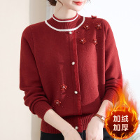 妈妈秋冬装一体绒国风旗袍领毛衣女保暖上衣中老年加绒加厚打底衫