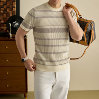 轻奢老钱风含桑蚕丝羊毛短袖男T恤春季新款针织圆领休闲男士T恤