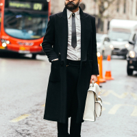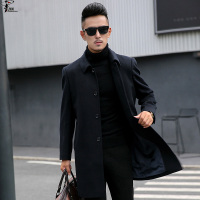 新款定制男士秋冬修身简约毛呢大衣超长款戗驳领羊毛西装风衣大码黑色