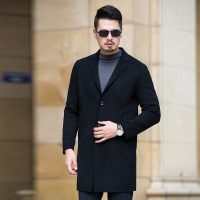 新款中长款秋冬男装外套毛呢大衣男羊毛双面呢羊绒大衣男黑色