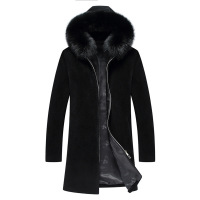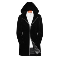 羊毛大衣男中长款加厚带帽羊剪绒男皮毛一体毛呢大衣青年前拉链黑色
