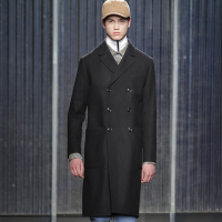 意大利风情秋冬羊毛双面呢大衣男纯手工中长款羊绒毛呢大衣男黑色