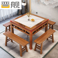 晋舰八仙桌家用四方桌中式正方形餐桌椅组合 120cm岩板长凳花梨色