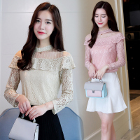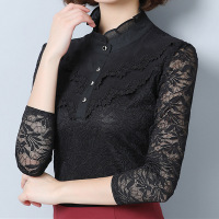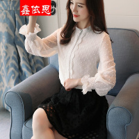 2017秋季装新款蕾丝衫韩版时尚修身长袖立领打底上衣女小衫