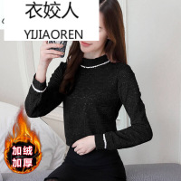衣姣人(YIJIAOREN)初高中学生时尚少女打底衫女长袖加绒加厚蕾丝立领小衫2018冬季韩版百搭短款T恤