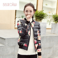 ssxoiw棉衣女短款2017新款冬季韩版百搭潮冬天修身显瘦轻薄印花小棉服女