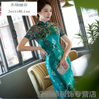 杰瑞丽莎16年秋季新款 金丝绒大码复古旗袍 时尚改良表演旗袍裙妈妈装