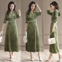 秋季金丝绒连衣裙2018新款中长款欧洲站修身长袖a字裙子