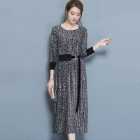秋季新款女装七分袖名媛中长款修身显瘦碎花系带金丝绒连衣裙花色