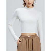 新款修身瑜伽上衣女健身长袖高弹T恤网纱透气跑步运动瑜伽