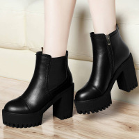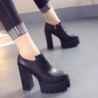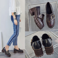 高跟鞋女秋季2017新款百搭黑色厚底鞋防水台英伦圆头粗跟深口单鞋