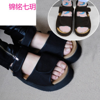 2017新款夏韩版厚底学生防水台黑色松糕鞋露趾坡跟欢乐颂潮凉鞋女