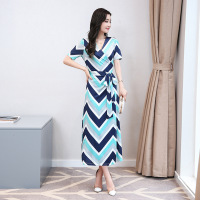 薇侣2017实拍2017夏季新款韩版雪纺连衣裙女收腰系带修身V领长裙子