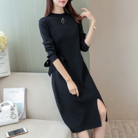 YIBUSHENG大码胖mm翻领针织后背蝴蝶结连衣裙2024季新款韩版收腰显瘦裙子