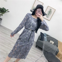 2017秋装新款毛衣女腰系带下摆开叉连衣裙韩版宽松显瘦针织打底衫