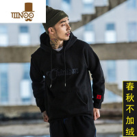 YANXU男士卫衣2023冬新款加绒加厚日系潮牌刺绣连帽套头衫外套