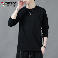啄木鸟黑色长袖t恤男纯棉秋季25新款宽松圆领休闲百搭打底衫卫衣
