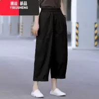 YIBUSHENG棉麻阔腿裤女春宽松大码复古休闲哈伦裤高腰显瘦黑色九分灯笼裤