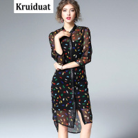 Kruidvat欧洲站2017春季新款女装欧美七分袖碎花连衣裙中长款两件套YLYP黑色