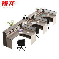 易企采 三人位含柜不含椅 异形办公室职员办公桌简约现代电脑卡座员工位组合