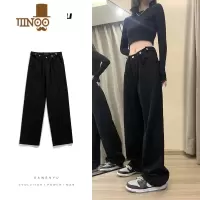 YANXU黑色阔腿牛仔裤男生潮牌高腰直筒长裤子宽松休闲街头中性风拖地裤