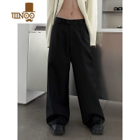 YANXUsoulworker小众灰色中性廓形西裤宽松阔腿裤拖地西装长裤黑色免烫