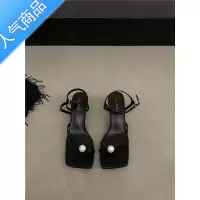 SUNTEK2023设计感珍珠细带夹脚细跟方头凉鞋百搭中跟一字搭扣高跟女鞋夏