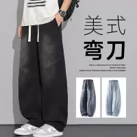 美式牛仔裤男士2026春夏新款潮牌宽松直筒天丝休闲阔腿长裤子