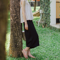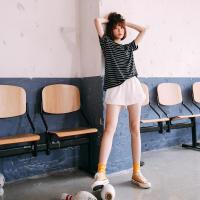 2017新款瞌睡兔厚雪纺面料松紧腰高腰阔腿短裤女夏下摆开叉百搭基础款