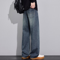 潮男日常穿搭阔腿裤 做旧水洗牛仔面料 美式高街 宽松休闲长裤子