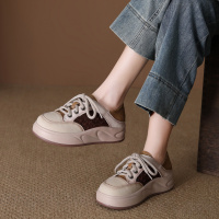 头层牛皮单鞋女2026春季新款复古圆头系带厚底叠穿简约低帮休闲鞋