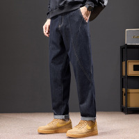明线拼接锥形牛仔裤男重磅垂感休闲裤春夏季街头风裤子潮牌男装